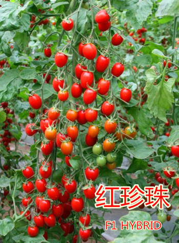 荷兰进口,无限生长型樱桃番茄新品种,早熟,高抗TY病毒。植株生长势强,坐果能力强,单穗可结果50个以上,果实椭圆型,大红色,光泽度好,硬度高,适合长途运输。单果重20克左右,口感风味浓郁,品质好,萼片美观,果肉厚,耐裂,抗逆性强,保护地和露地均可种植。